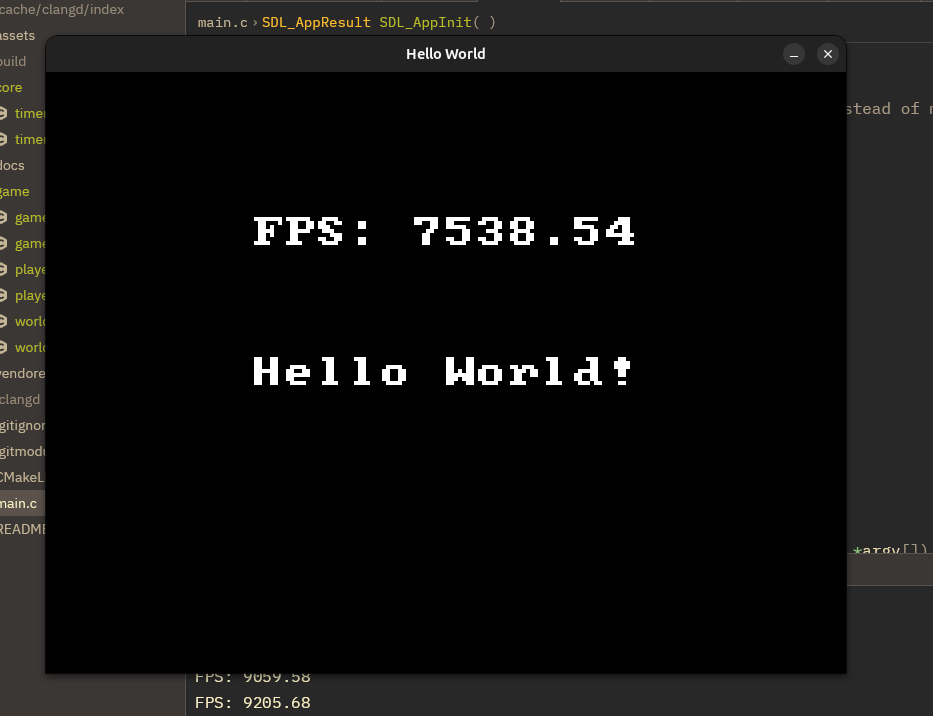 I ended up on a bit of a tangent, with chatGPT leading the way. I was curious, with the starter program the SDL team give, how can we profile how well it performs? I thought I’d add on a simple bit of logic to the loop, and pop the FPS on the screen. One commit later-